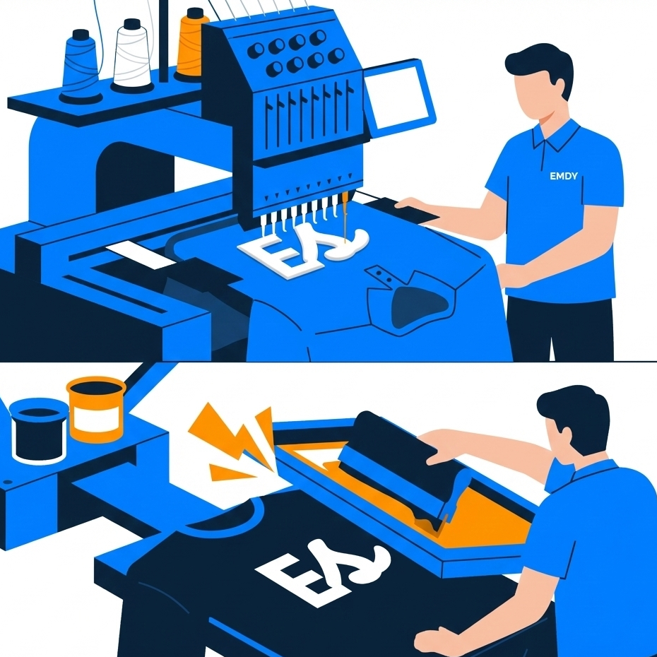 EMDY Stitches makes premium custom apparel for businesses — embroidered uniforms, printed workwear, branded gear — and they do it exceptionally well. Their clients include names like Goolex, HealthyKart, ADB, and Falcon.